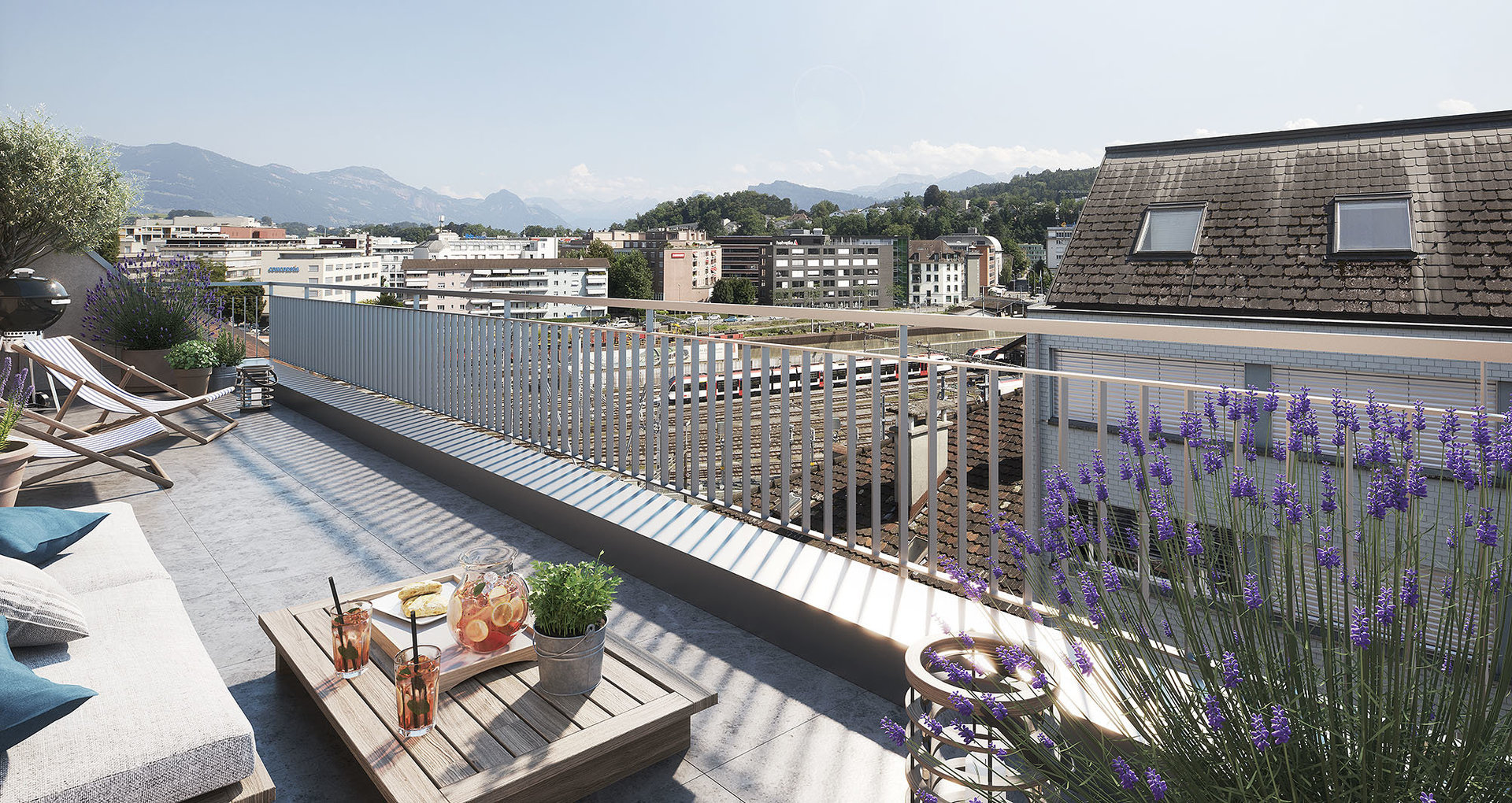 Am Neuweg 4, mittendrin in der Luzerner Neustadt, finden sich im «Stadtanker» nun 18 modernisierte Mietwohnungen von unterschiedlicher Grösse, welche ihren Bewohnerinnen und Bewohnern ein stilvolles Ambiente mitten im Zentrum bieten. Hier ankert man in sechs 2.5- und zehn 3.5-Zimmer-Wohnungen, während im Erdgeschoss bei Bedarf Ateliers/Hobbyräume dazugemietet werden können. Als Krönung entstehen in den beiden obersten Etagen zwei 5.5-Zimmer-Maisonettewohnungen mit grosszügigen Terrassen sowie wunderbarer Aussicht in die Umgebung und in die nahe Bergwelt. Es ist zudem eine begrenzte Anzahl von Aussenparkplätzen verfügbar.